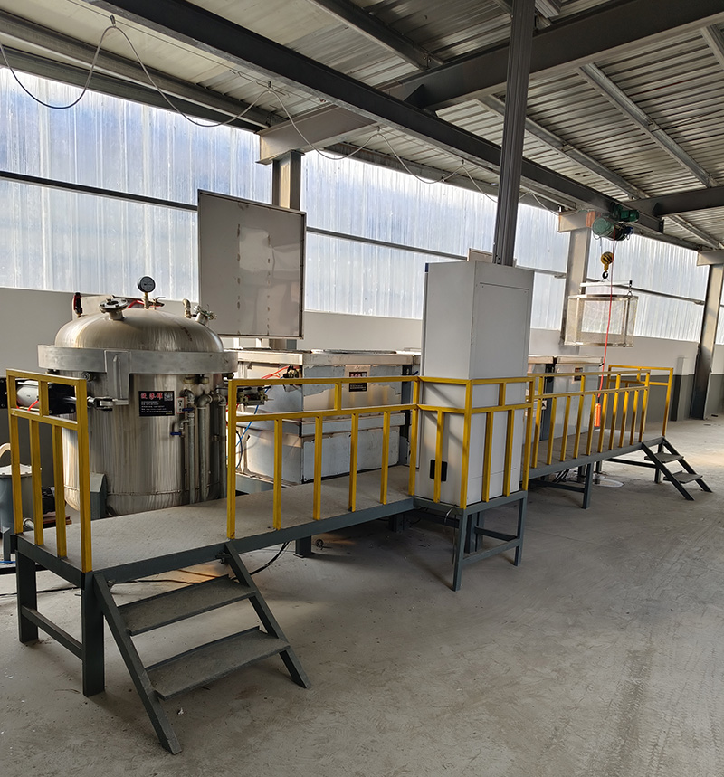 ●濕真空處理:用真空把膠液吸進(jìn)浸滲罐內(nèi),膠液的液面高出浸滲籃中零件40-50mm為準(zhǔn),繼續(xù)抽真空至-0.098mpa左右,保壓5分鐘,然后緩慢卸下至常壓。